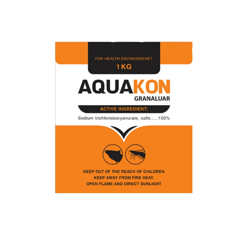 - Aquakon là sản phẩm diệt khuẩn phổ rộng thế hệ mới, giúp diệt v.khuẩn, vir.us, nấm, ký sinh trùng, và đ.tr,i hiệu quả các bênh về gan tụy và đường tiêu hóa trên tôm, cá, lươn, ếch, ốc, ba ba. Ngoài ra, sản phẩm có khả năng tẩy nhớt ao bạt, giải độc đáy ao và khử trùng dụng cụ ao nuôi an toàn, không gây sốc cho con giống non mới thả.