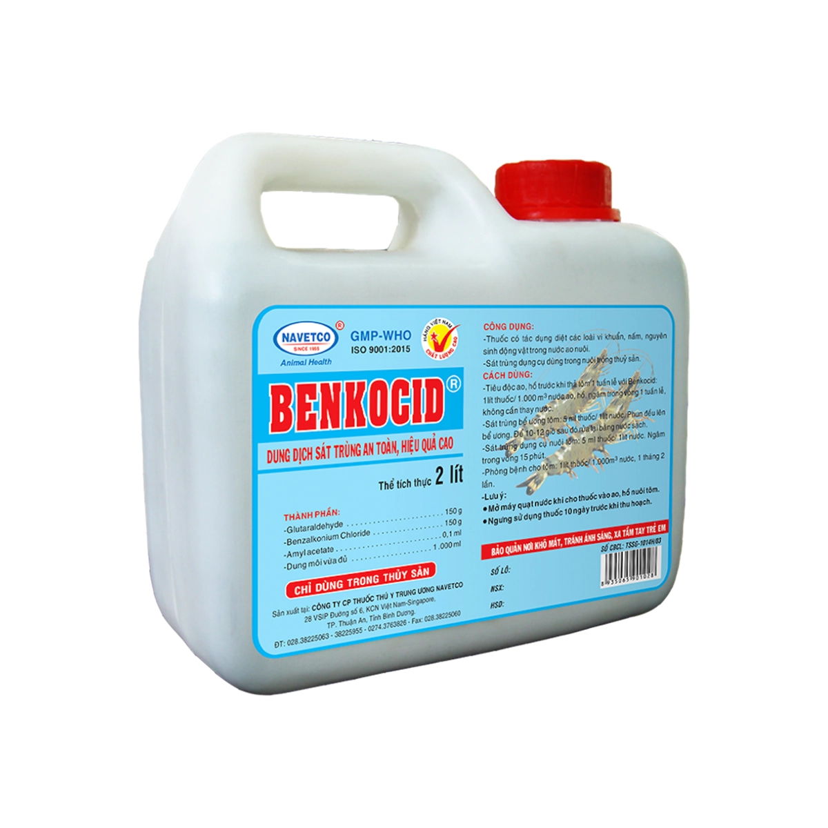- Tiêu độc ao, hồ trước khi thả tôm 1 tuần lễ với Benkocid: 1lít thuốc/ 1.000 m3 nước ao, hồ, ngâm trong vòng 1 tuần lễ, không cần thay nước.