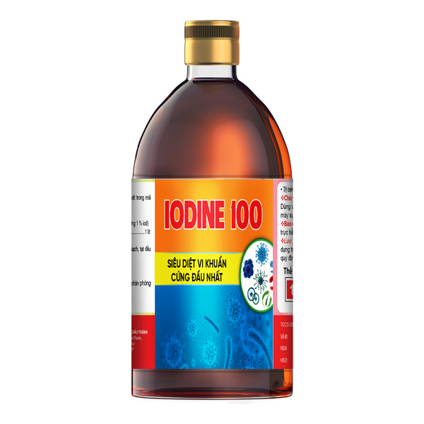 - Cách dùng: Pha loãng IODINE 100 với nước sạch, tạt đều khắp mặt ao