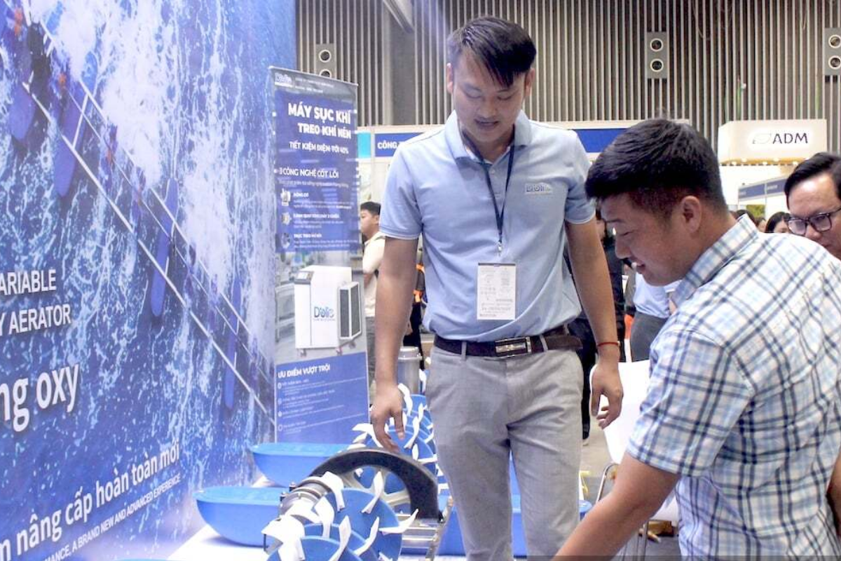Nông dân tham quan tìm hiểu các thiết bị công nghệ phục vụ nuôi tôm tại triển lãm Quốc tế chuyên ngành thủy sản và triển lãm Quốc tế công nghệ ngành Tôm Việt Nam đang tổ chức ở TP.HCM. Ảnh: Nguyên Vỹ