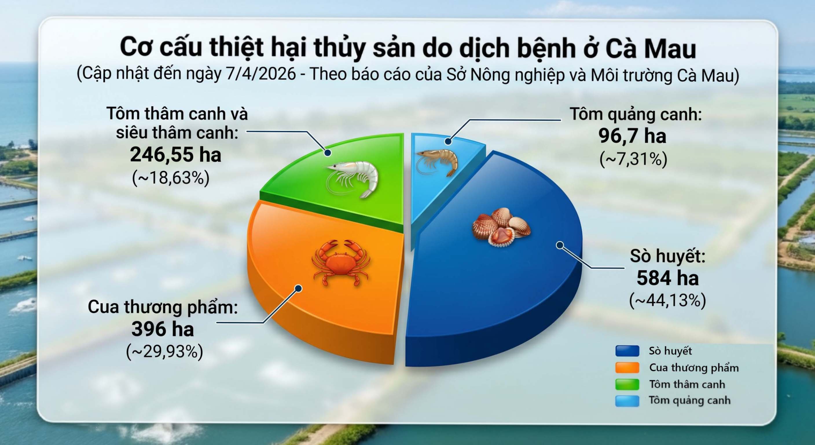 Dịch bệnh thủy sản đang bùng phát diện rộng do nắng nóng cực đoan kéo dài. Tại tỉnh Cà Mau, thiệt hại đã lên tới 1.323,25 ha chỉ trong đầu vụ nuôi năm 2026.
