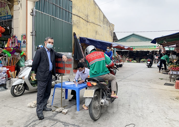 Nhu cầu đi chợ mua sắm trong ngày ông Công, ông Táo tăng cao, ban quản lý chợ yêu cầu người dân phải kê khai thông tin trước khi vào để bảo đảm phòng chống dịch bệnh.