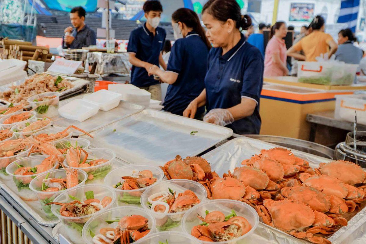 Gian hàng ẩm thực giới thiệu nhiều món chế biến từ Cua và Tôm Cà Mau