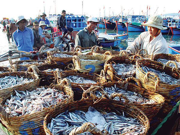 Ngư dân xã Phước Diêm (Thuận Nam) trúng cá cơm. Ảnh: Diễm My