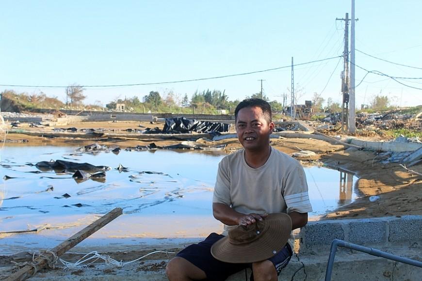 Anh Điệp bảo: “Sau hai trận bão, tôi nợ hơn 1,5 tỷ đồng. Giờ chẳng còn gì để thế chấp, ngân hàng cũng không dám cho vay lại. Mấy hôm nay nằm trằn trọc, chỉ mong có ai giúp để dựng lại cái ao.”