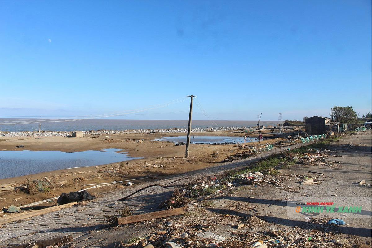 Những ngày đầu tháng Mười, vùng biển Hoằng Thanh vẫn chưa thôi ảm đạm. Mùi bùn, mùi tôm chết, mùi rác biển hòa lẫn trong gió. Nhiều căn chòi trông tôm đổ sập, những tấm bạt nilon rách tơi tả, lộ ra những ao nuôi đã bị sóng cuốn sạch. Cảnh tượng tiêu điều ấy khiến ai đi qua cũng phải lặng người.