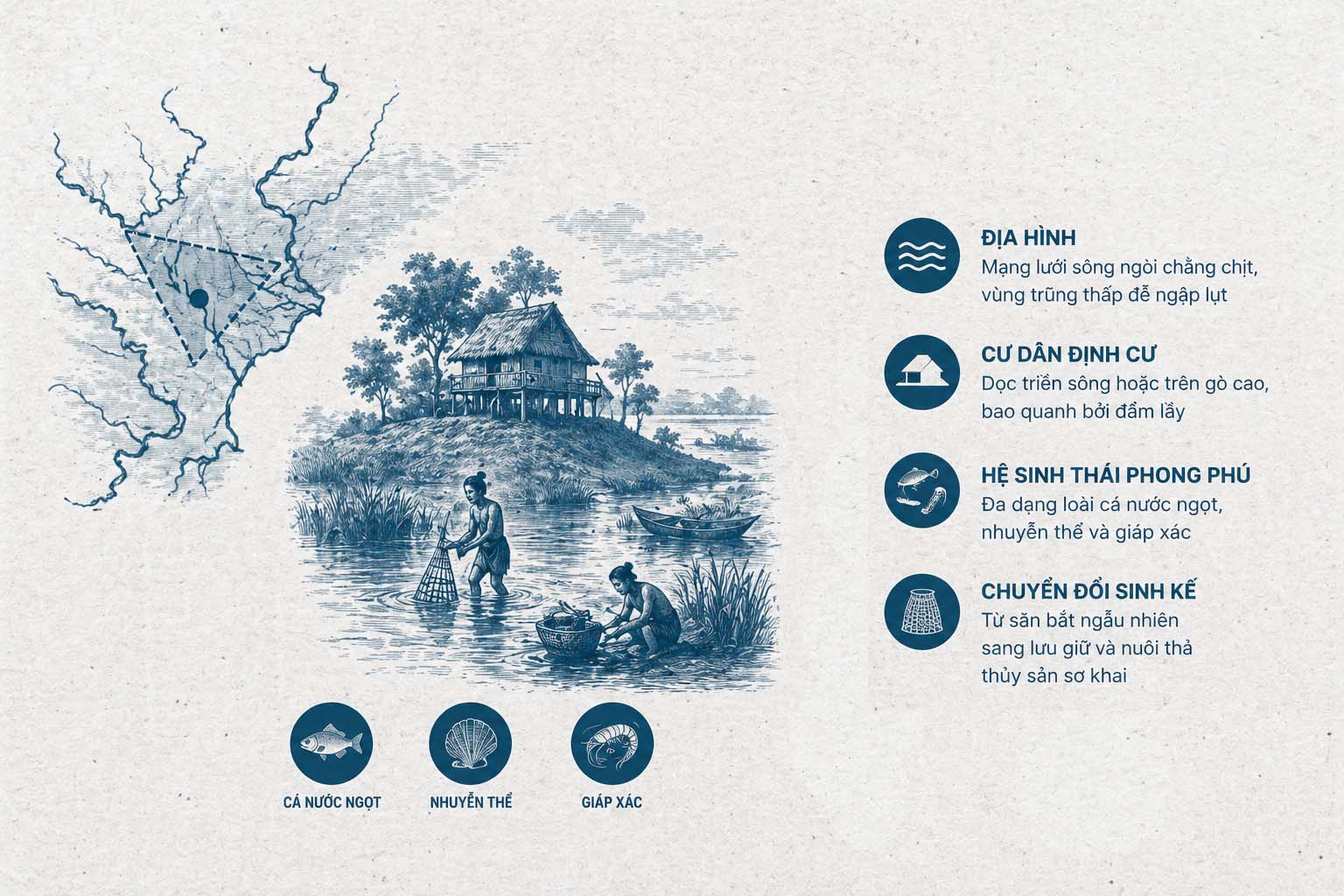 Hoạt động khai thác và nuôi trồng thủy sản không chỉ đơn thuần là giải quyết vấn đề thực phẩm mà còn là động lực cấu trúc nên xã hội thời Hùng Vương.