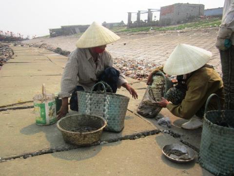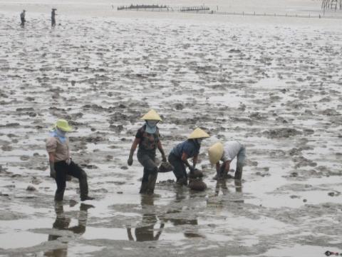Những người phụ nữ ven biển dầm mình trong lớp bùn đất ở bãi triều “săn” cá còi