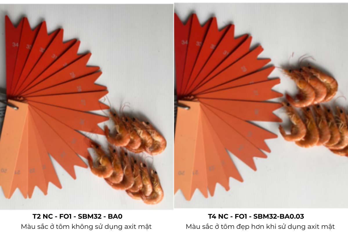 - Cải thiện độ bóng đẹp vỏ tôm, màu sắc khi chế biến, nâng cao giá trị thương phẩm.