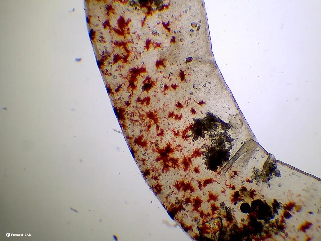 Hình ảnh ruột tôm bị viêm dưới kính hiển vi. Ảnh: Farmext LAB.