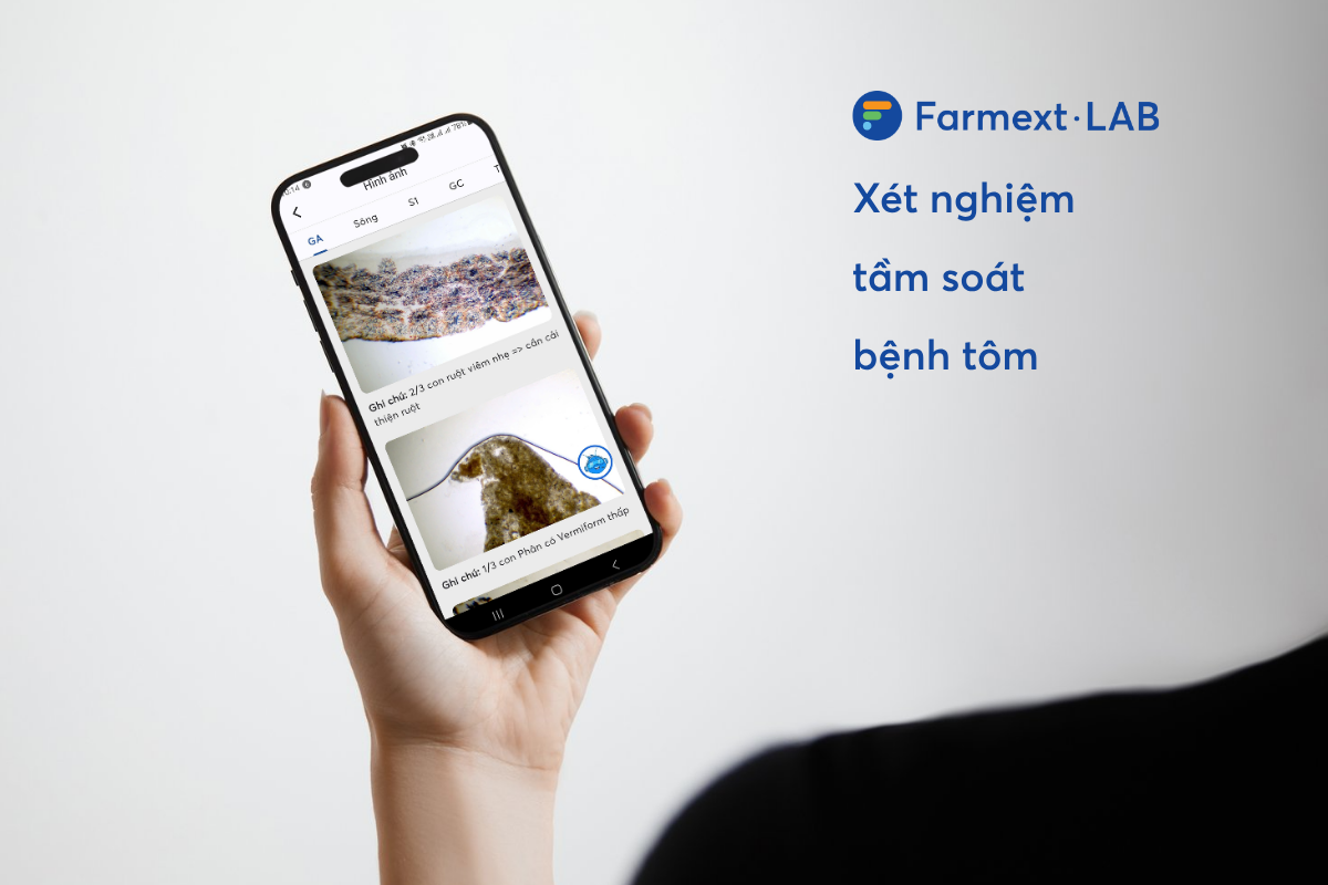 Theo dõi sức khỏe tôm định kỳ thông qua xét nghiệm thủy sản để phát hiện sớm các dấu hiệu bất thường. Ảnh: Farmext LAB.