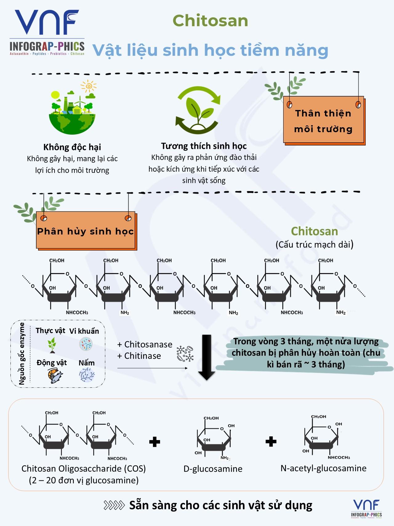 Chitosan là một vật liệu sinh học tiềm năng với đặc tính nổi bật: thân thiện với môi trường và phân hủy sinh học.
